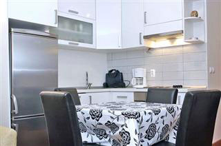 Apartman Nevena / 120 m2 / 5. kat / novoizgrađeni vrlo luksuzan dvoetažni apartman, suvremeno i kvalitetno uređen s eskluzivnim interijerom. Sa balkona, terase i spavaće sobe pruža se veličanstven pogled na more i susjedne otoke Brač i Hvar. Nalazi se u zapadnom dijelu Makarske, svega 15 m od predivne šljunčane plaže. Smješten je na zadnjem katu kućei zauzima cijelu etažu, ima2 velike natkrivene terase sa vanjskim grillom i 2 balkona. Kuća ima lift a apartman vlastito garažno mjesto.