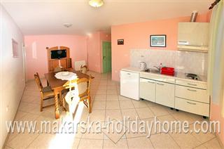 Apartmenti Pivac A2 / 55 m2 / 1. floor / located in the western part of the Makarska near the famous hotel "Dalmatia", located only 50 m from the sea and sandy beaches, close to the beach, restaurants, shops, bars and entertainment facilities make them ideal for guests who arrive by plane in Makarska. the apartment consists of 2 double bedrooms + dnevniog room + kitchen with dining room in the living room and two balconies.