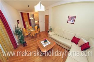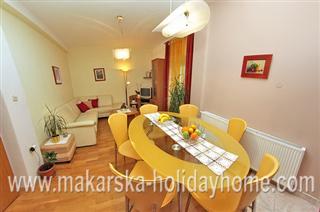 Apartment Villa Leonida / 320 m2 / New luxurious villa in the center of Makarska, lies at the location of 960 m2, has 3 double bedrooms with bathroom, living room, large kitchen with dining room + small kitchen work room with sofa bed for 2 persons, terrace, garage and large fenced garden with Mediterranean herbs and flowers.