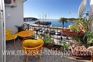 Apartment Jelenka / 45 m2 + balcony / 2. floor / located in the center of Makarska on the waterfront, has one double bedroom, kitchen, living room, bathroom / toilet and a balcony overlooking the sea and islands of Brac and Hvar. The apartment is located just 250 meters from the beautiful sandy beach. It is equipped with all the amenities for a pleasant family holiday.