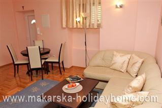 Apartment SUMIĆ A1 / 45 m2 + balcony / 1. floor / located in the center of Makarska, near the sea famous hotel "Meteor", only 30 meters from the beautiful sandy beach and 100 m from the town center are ideal for families with small children and the elderly. The apartment consists of 2 bedrooms, living room, kitchen with dining room in the living room + bathroom / toilet + balcony.