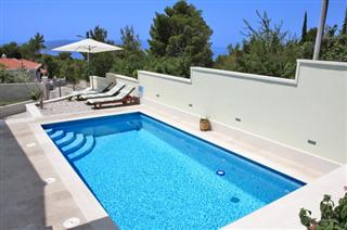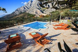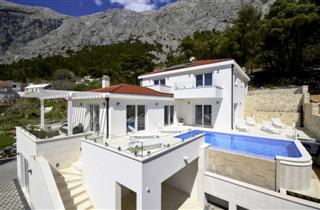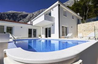 Villa INES / 5 rooms / 400 m2 / Newly luxurious Villa with 4 stars. It is located in a small village on a hill above the Bast famous summer resort Baska Voda. The villa is spread over a plot of 800 m2, consists of 3 floors with 5 bedrooms, a gym and sauna. Thanks to its location and the beautiful sun-drenched position with large garden, surrounded by olive groves and pine forests is ideal for privacy and a quiet holiday.