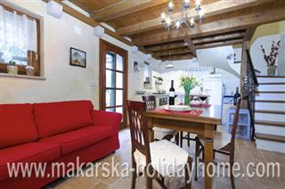 Villa ELA / 1 rooms / 46 m / Newly renovated old stone house in rural southern style, is located in the village of Puharići above Makarska - 1, 2 km from the center of Makarska, quiet, sunny position on a slope at 180 m above sea level 1, 5 km away from the beach and the main city attractions, but at the same time, thanks to its location and the beautiful sun-drenched position with large garden, surrounded by olive groves and other luxury villas, providing privacy and a quiet holiday.